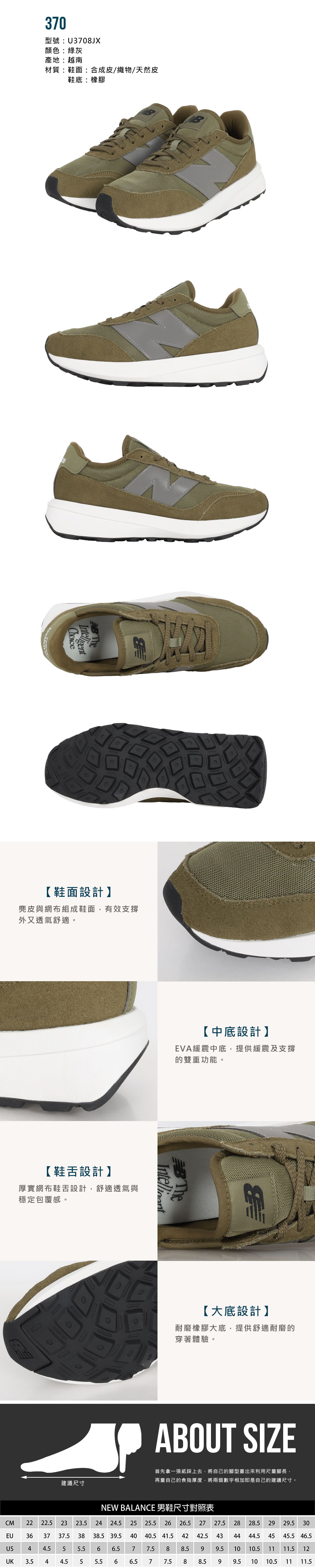 NEW BALANCE 男款復古休閒鞋  @U370@ U3708JX - 綠灰