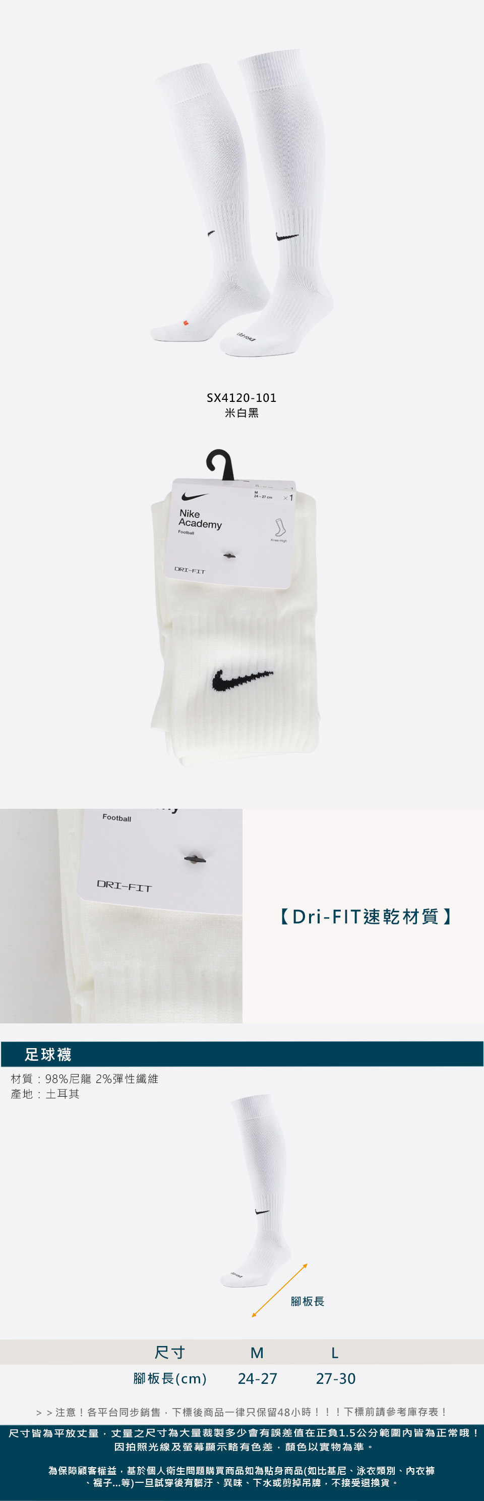 NIKE 足球襪  SX4120-101