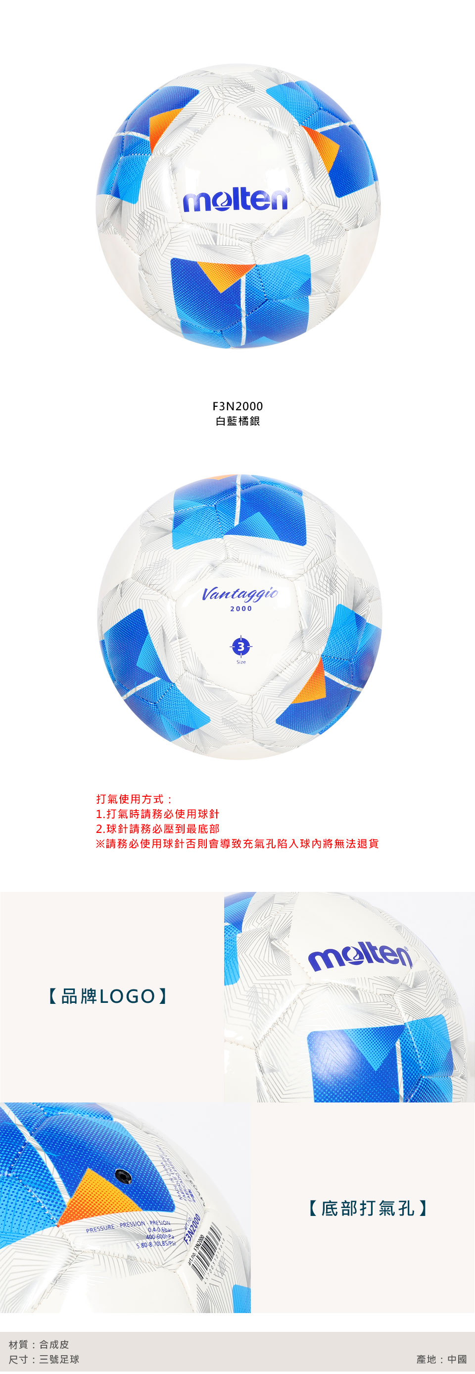Molten #3合成皮足球  F3N2000 - 白藍橘銀