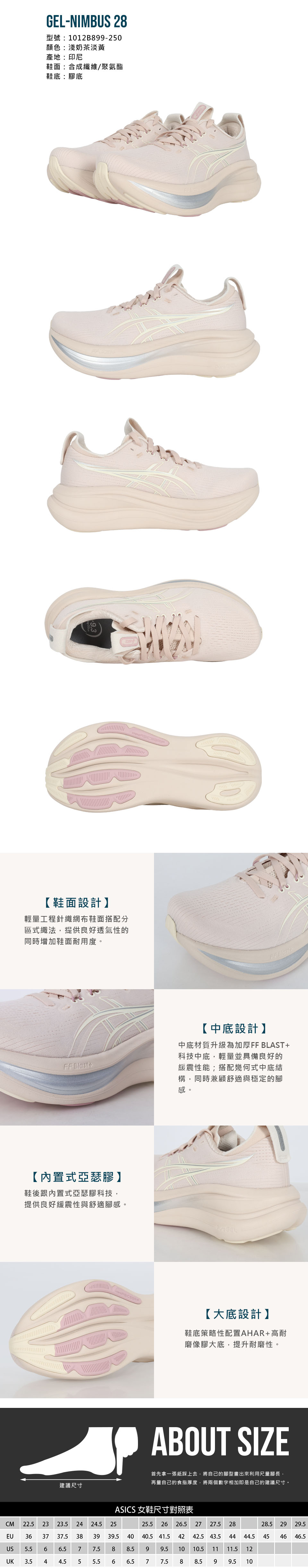 ASICS 女款緩衝慢跑鞋  @GEL-NIMBUS 28@ 1012B899-250 - 淺奶茶淡黃