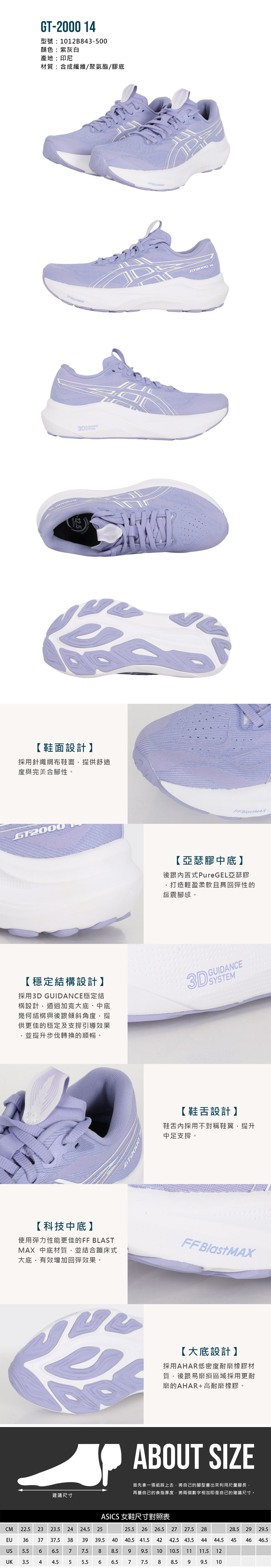 ASICS 女款支撐慢跑鞋  @GT-2000 14@ 1012B843-500 - 紫灰白