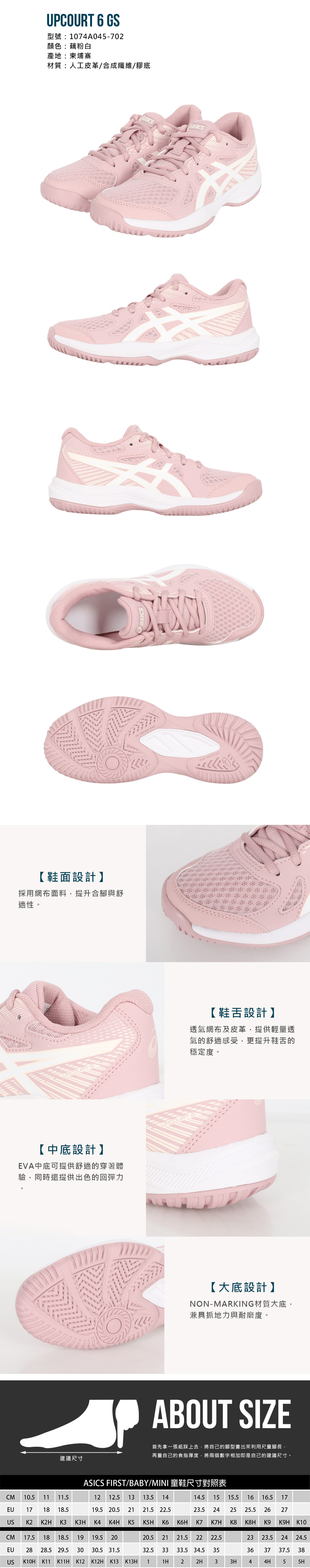 ASICS 兒童排球鞋  @UPCOURT 6 GS@ 1074A045-702 - 藕粉白