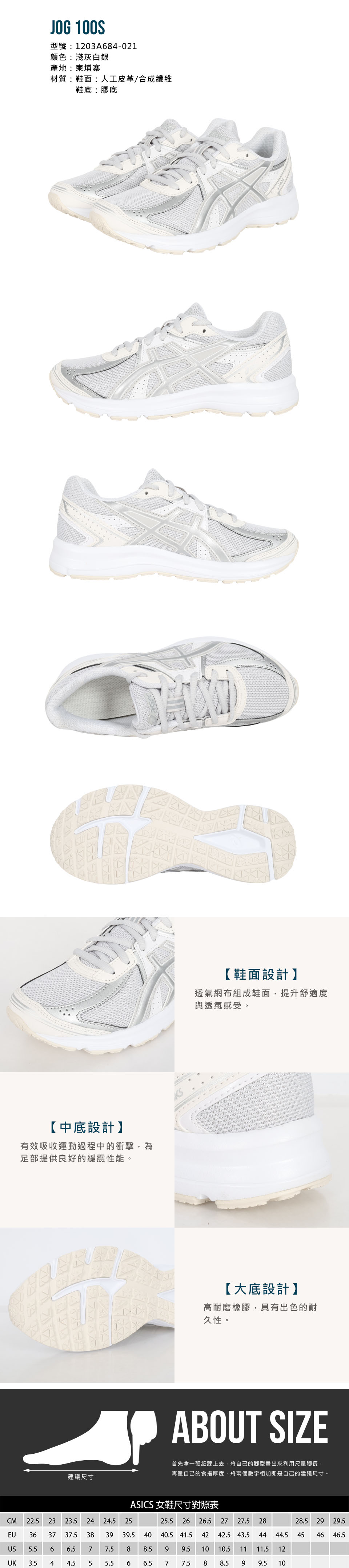 ASICS 女款運動休閒鞋  @JOG 100S@ 1203A684-021 - 淺灰白銀