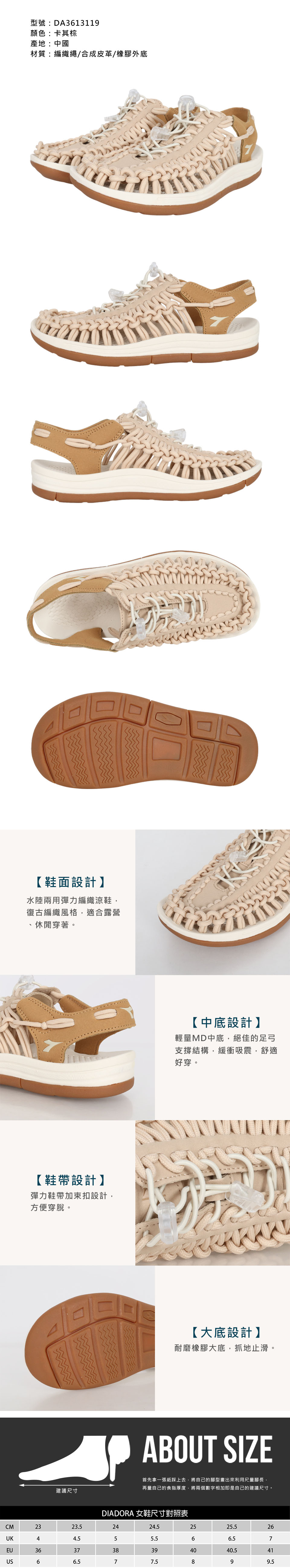 DIADORA 女編織涼鞋  DA3613119 - 卡其棕