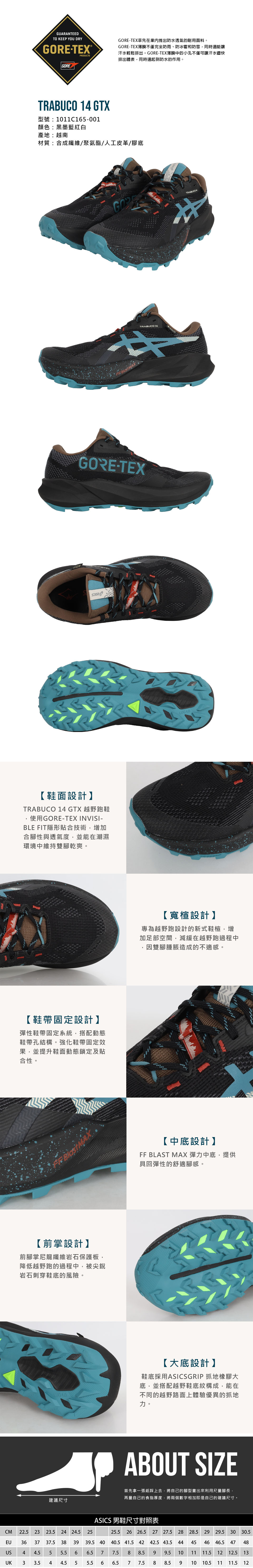 ASICS 特定-男款防水越野跑鞋  @TRABUCO 14 GTX@ 1011C165-001 - 黑墨藍紅白
