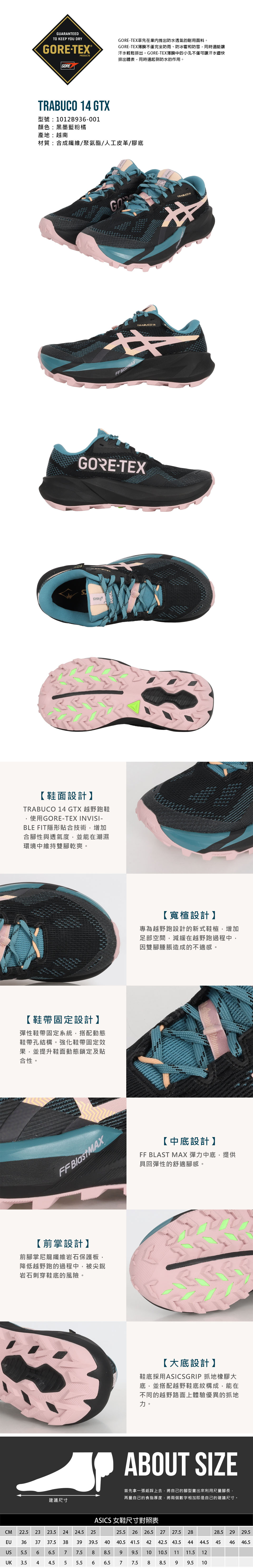 ASICS 特定-女款防水越野跑鞋  @TRABUCO 14 GTX@ 1012B936-001 - 黑墨藍粉橘