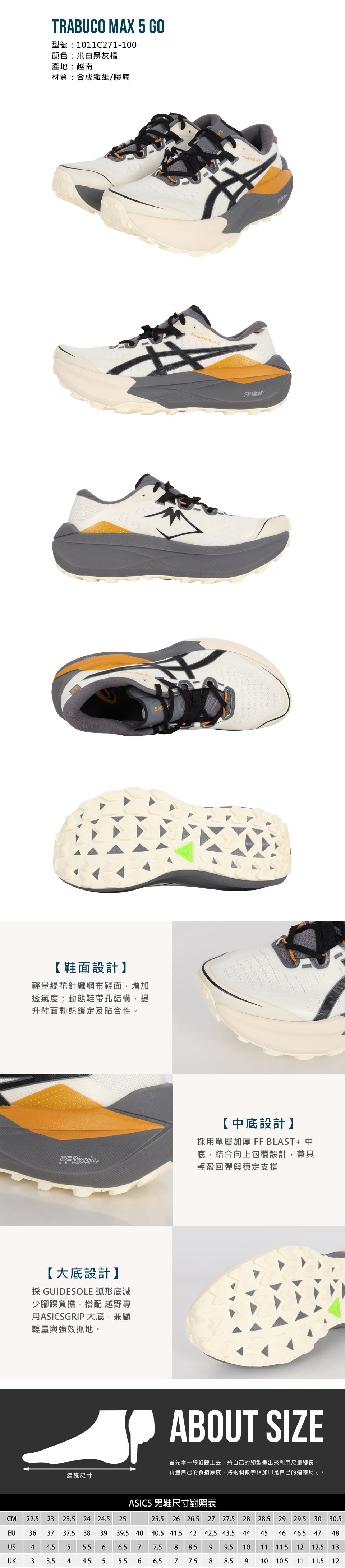 ASICS 特定-男款戶外越野跑鞋  @TRABUCO MAX 5 GO@ 1011C271-100 - 米白黑灰橘