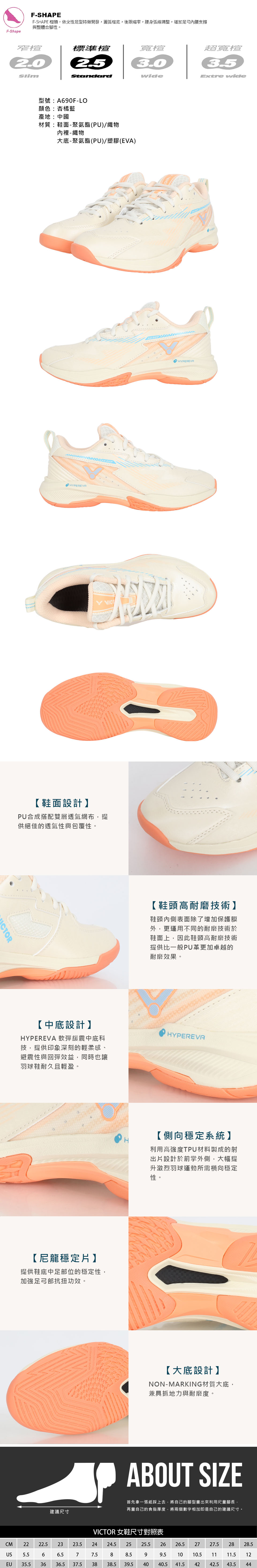 VICTOR 女款羽球鞋  A690F-LO - 杏橘藍