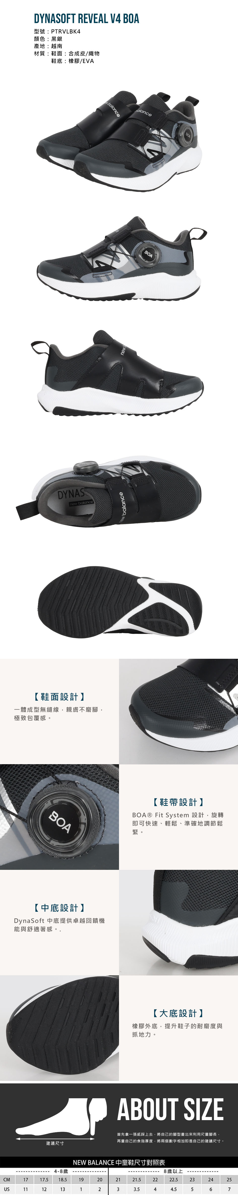 NEW BALANCE 中童旋鈕運動鞋-WIDE BALANCE @DynaSoft Reveal V4 BOA@ NEW PTRVLBK4 - 黑銀
