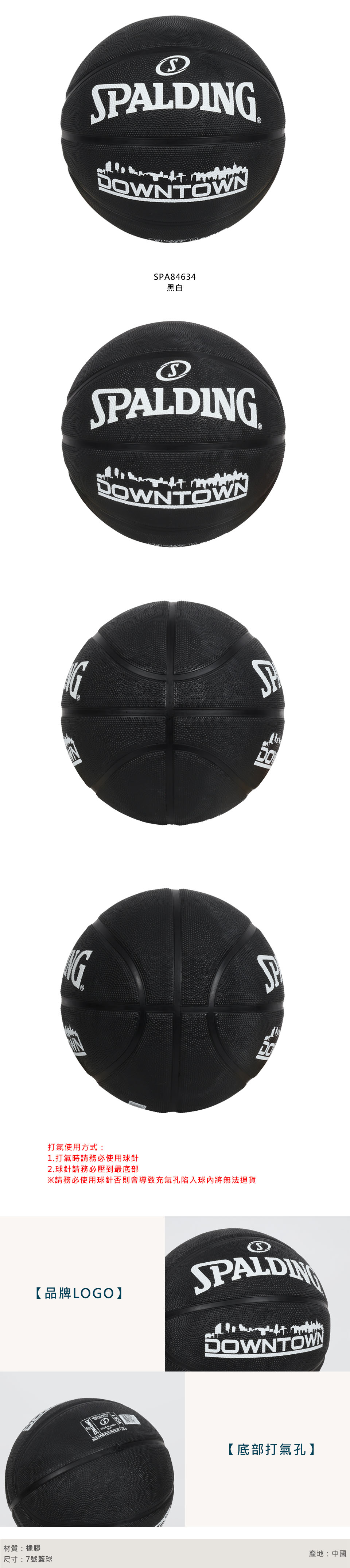 SPALDING DownTown #7橡膠籃球#41467  SPA84634 - 黑白