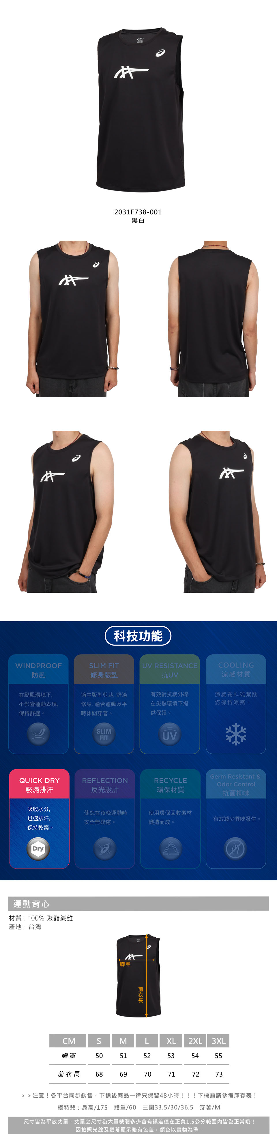 ASICS 男款運動背心  2031F738-001