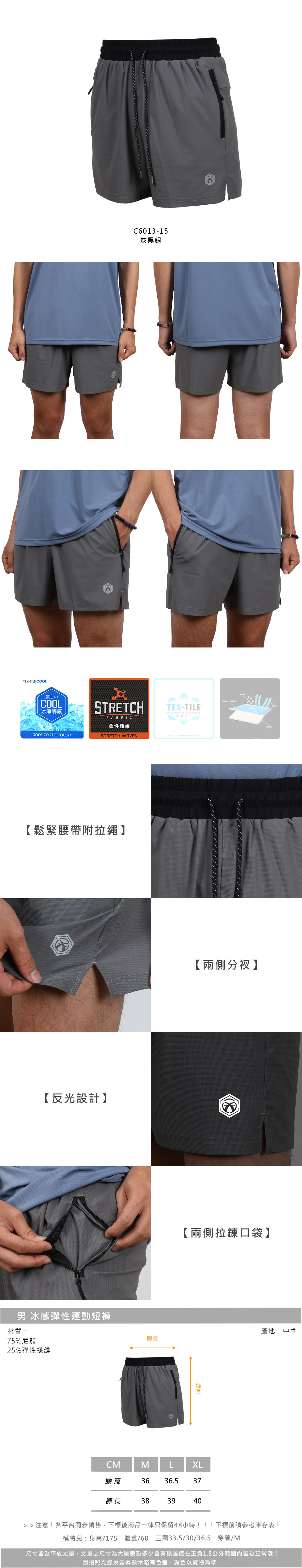 FIRESTAR 男款冰感彈性運動短褲  C6013-15 - 灰黑銀
