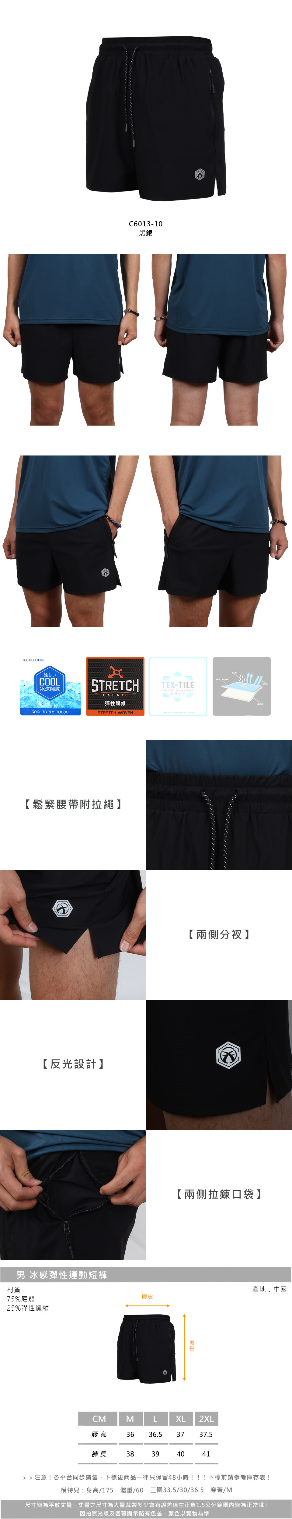 FIRESTAR 男款冰感彈性運動短褲  C6013-10 - 黑銀