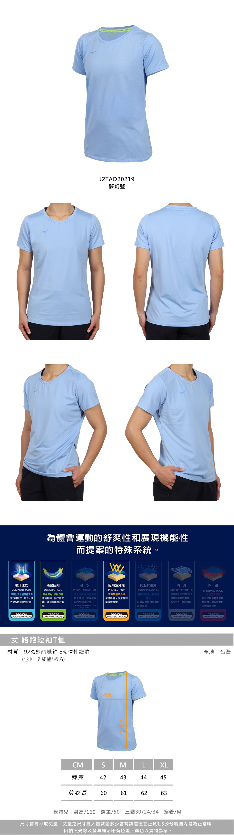 MIZUNO 女款路跑短袖T恤  J2TAD20219 - 夢幻藍