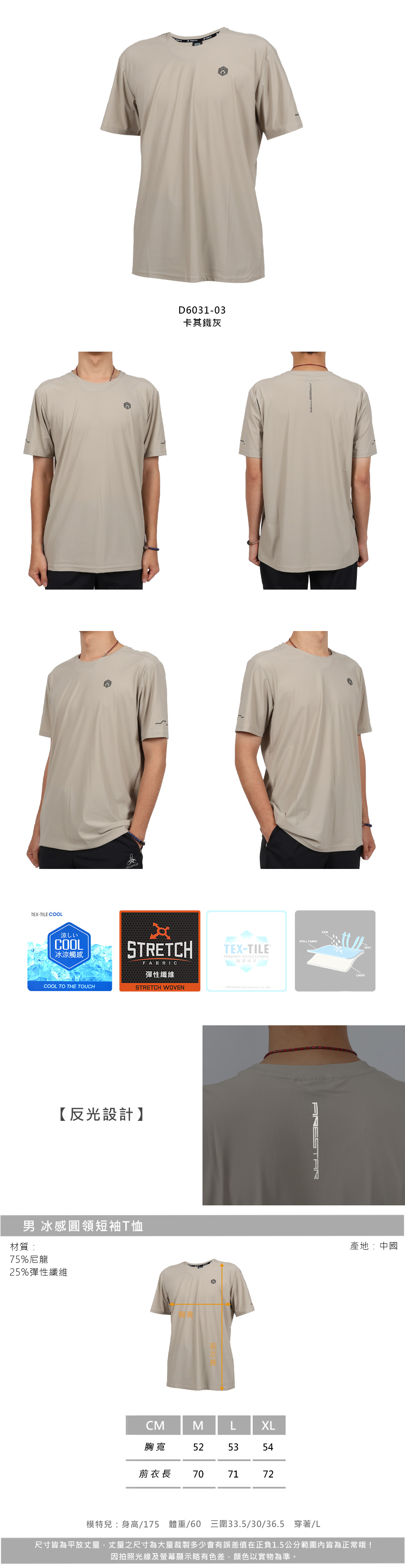 FIRESTAR 男款冰感圓領短袖T恤  D6031-03 - 卡其鐵灰