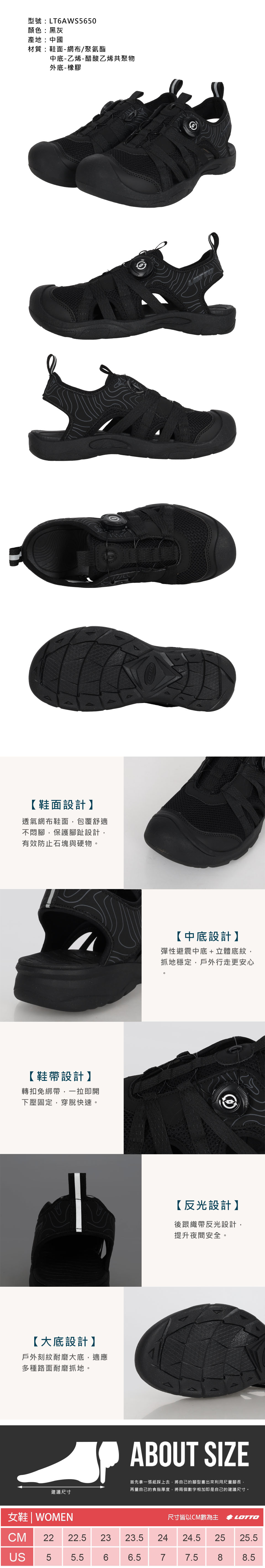 LOTTO 女款溪徒轉扣護趾涼鞋  LT6AWS5650 - 黑灰