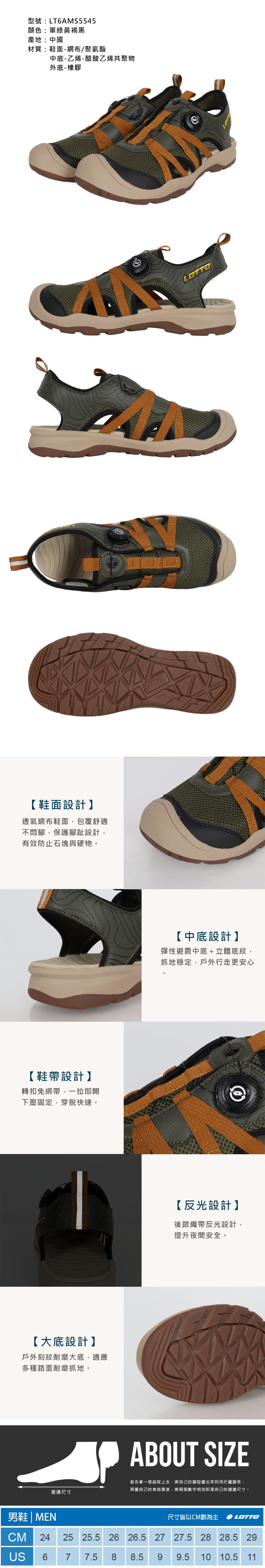LOTTO 男款溪徒轉扣護趾涼鞋  LT6AMS5545 - 軍綠黃褐黑