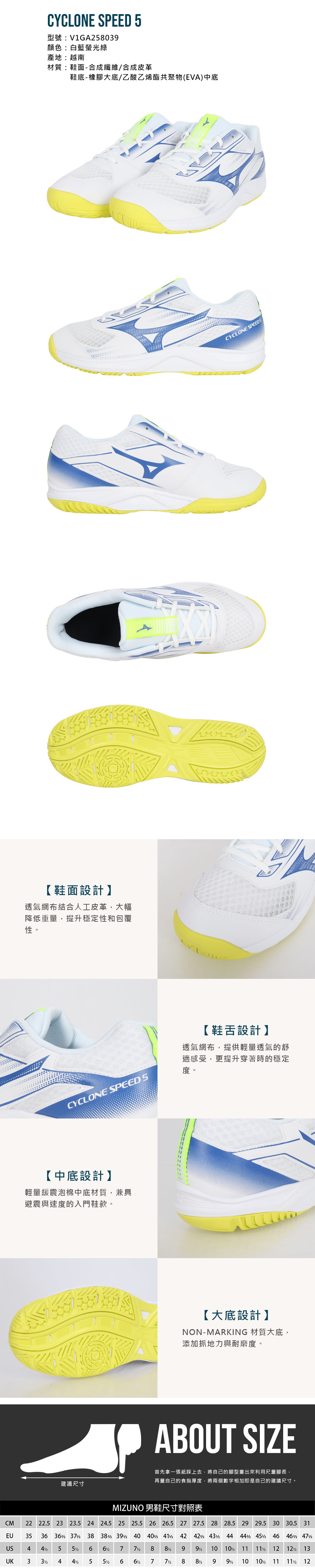 MIZUNO 男款排球鞋  @CYCLONE SPEED 5@ V1GA258039 - 白藍螢光綠