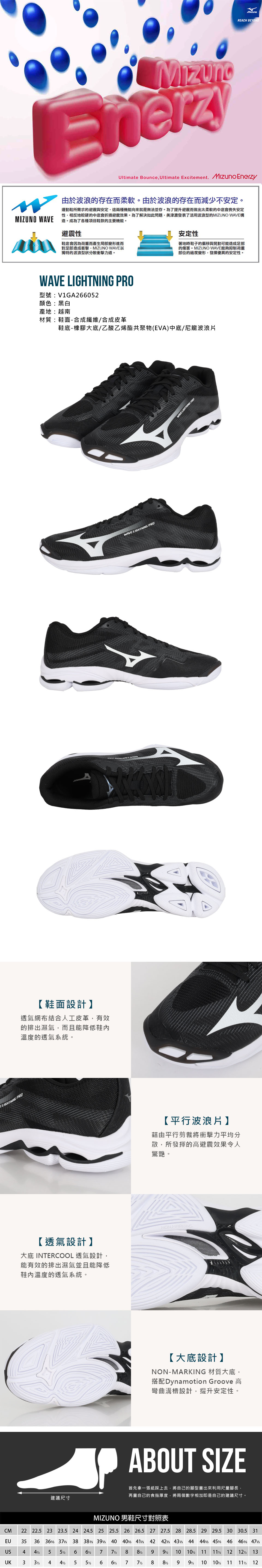 MIZUNO 男款排球鞋  @WAVE LIGHTNING PRO@ V1GA266052 - 黑白