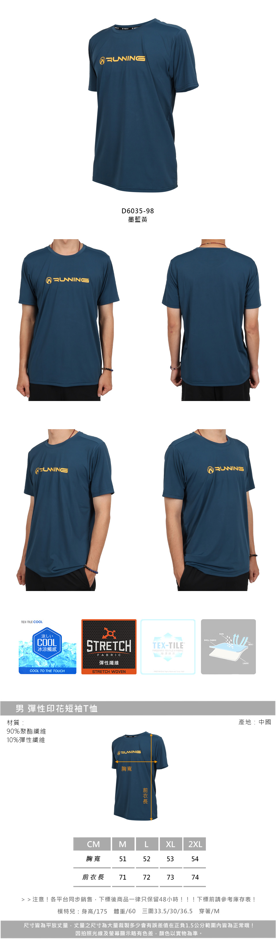 FIRESTAR 男款彈性印花短袖T恤  D6035-98 - 墨藍黃