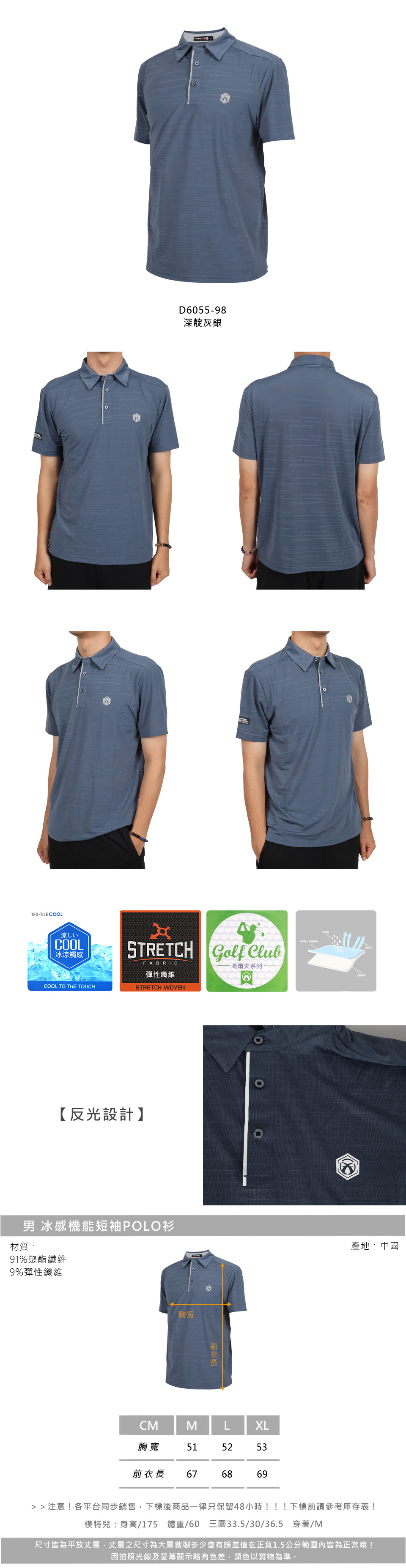 FIRESTAR 男款冰感機能短袖POLO衫  D6055-98 - 深靛灰銀