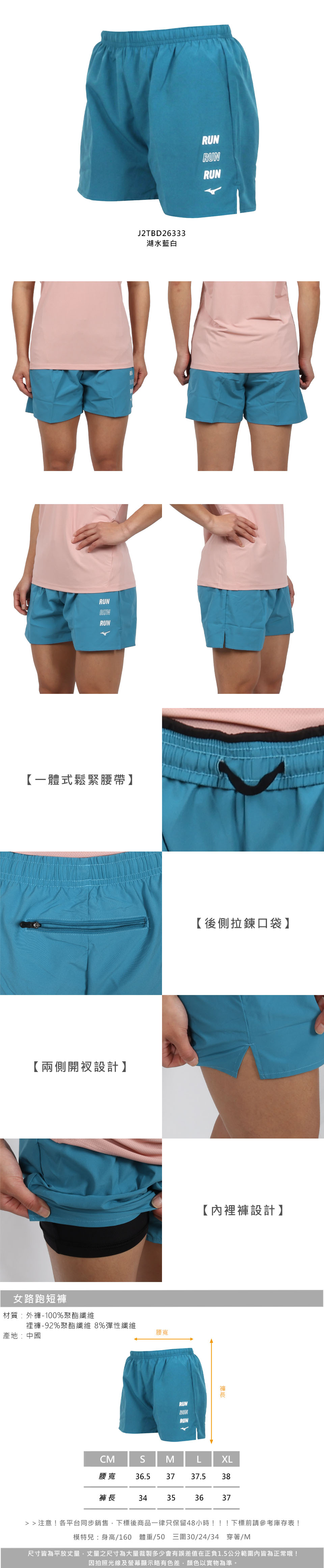 MIZUNO 女路跑短褲  J2TBD26333 - 湖水藍白