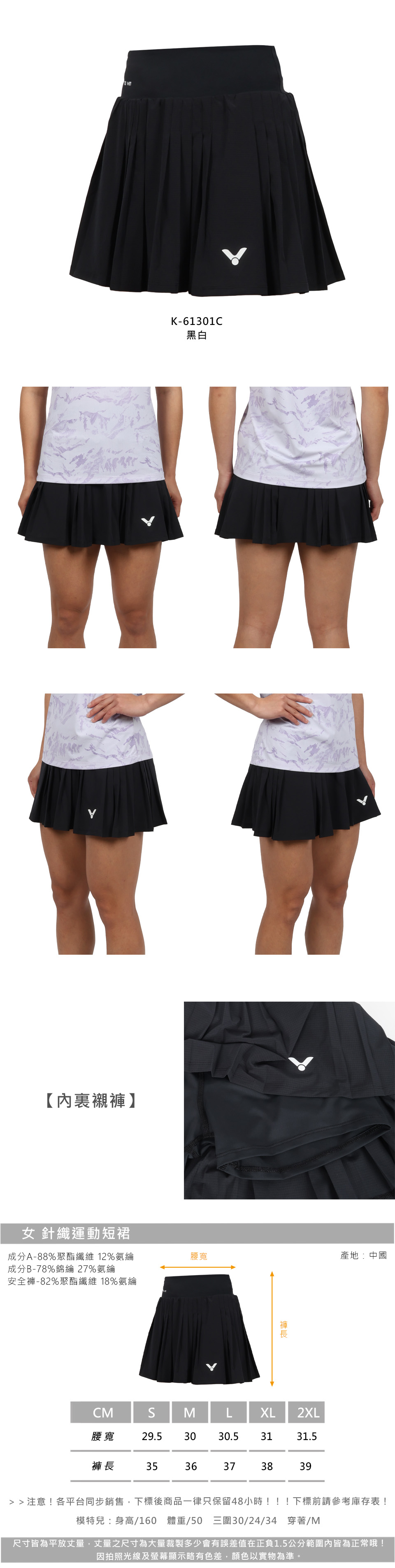 VICTOR 女款針織運動短裙  K-61301C - 黑白
