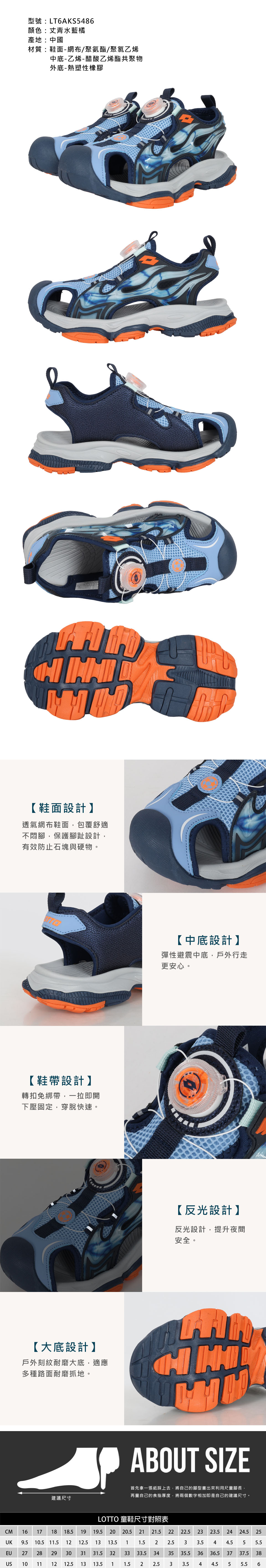 LOTTO 大童夏日動感轉扣護趾涼鞋  LT6AKS5486 - 丈青水藍橘