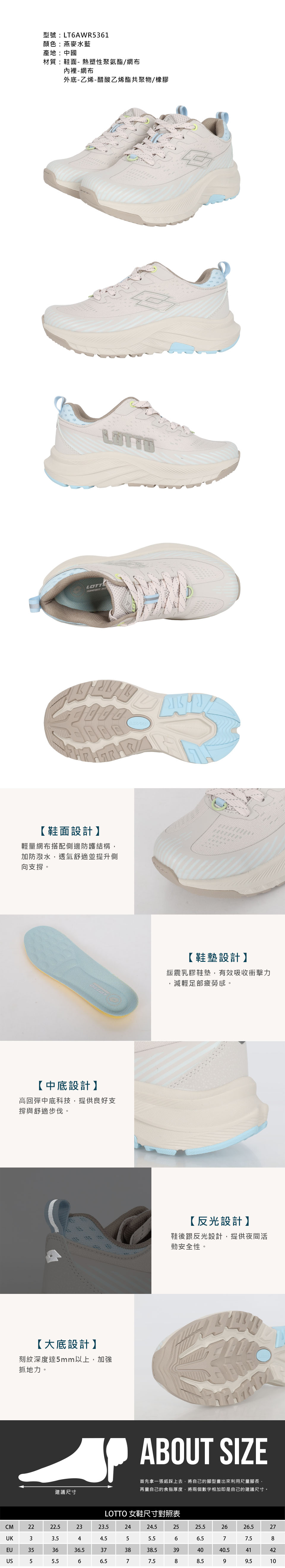 LOTTO 女款野徒CT-360防潑水越野跑鞋  LT6AWR5361 - 燕麥水藍