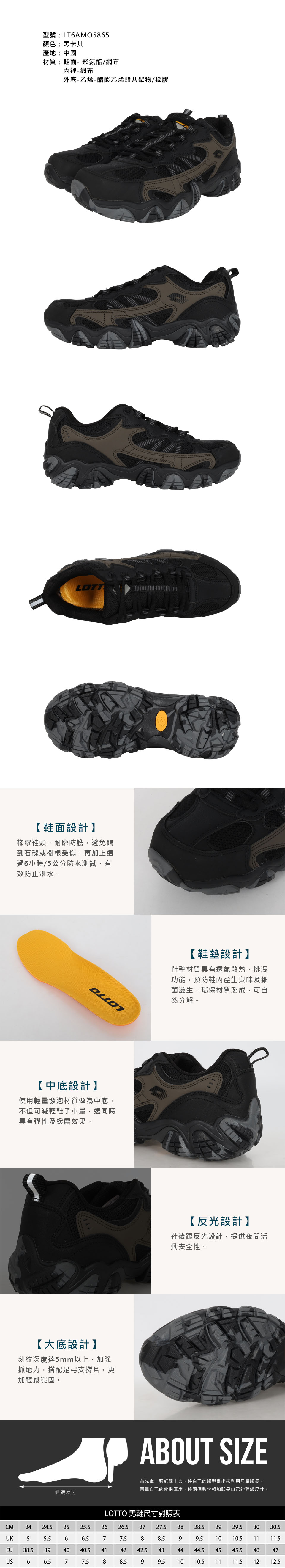 LOTTO 男款REX靜態防水登山踏青鞋  LT6AMO5865 - 黑卡其