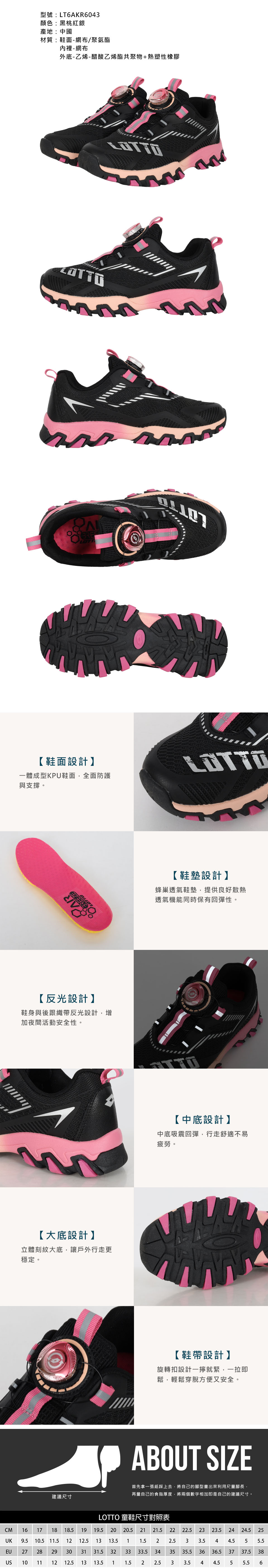 LOTTO 大童游準KPU轉扣越野跑鞋  LT6AKR6043 - 黑桃紅銀