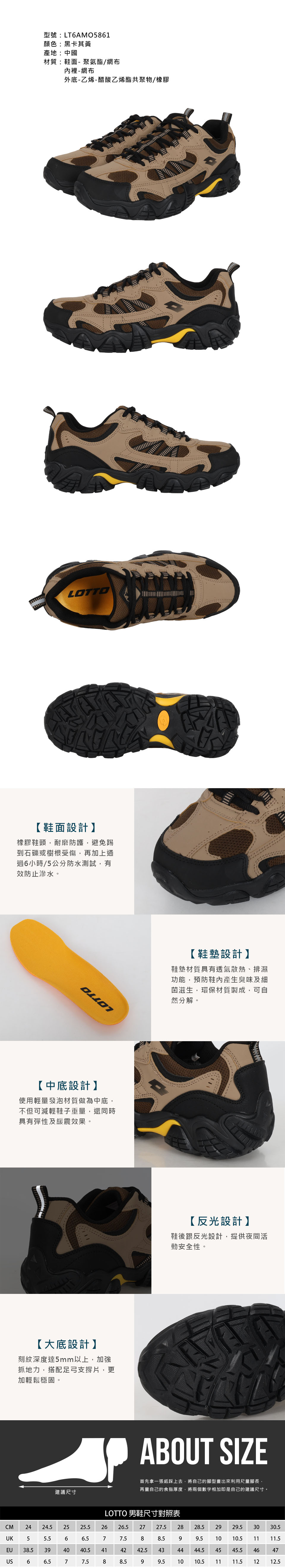 LOTTO 男款REX防水登山踏青鞋  LT6AMO5861 - 黑卡其黃