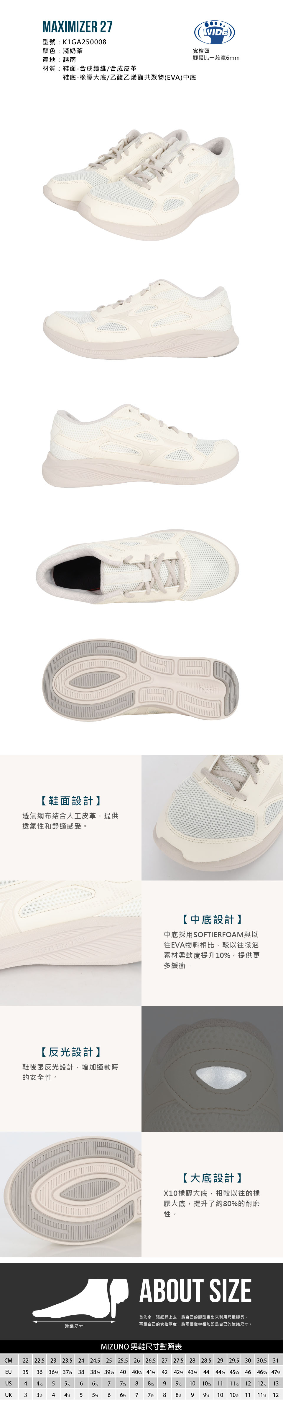 MIZUNO 男款慢跑鞋-3E  @MAXIMZER 27@ K1GA250008 - 淺奶茶