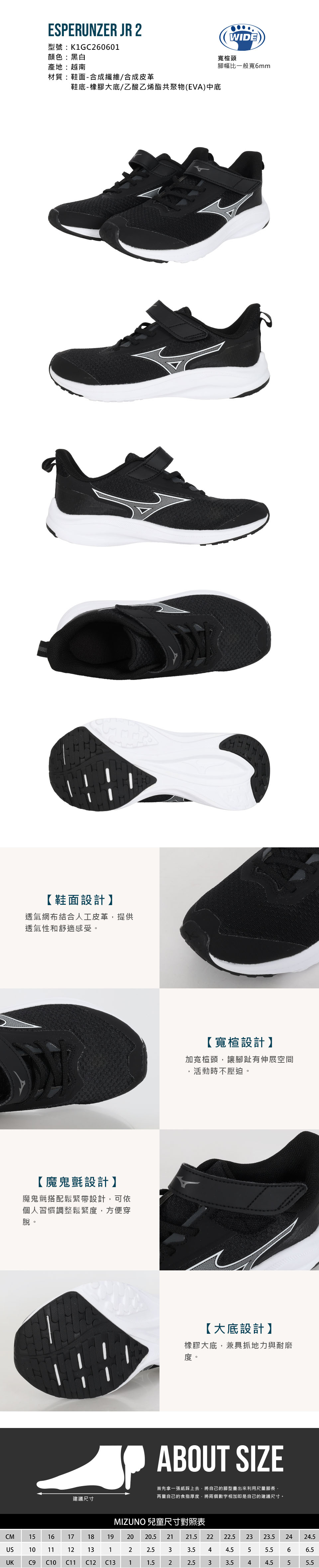 MIZUNO 大童運動鞋-3E  @ESPERUNZER Jr 2@ K1GC260601 - 黑白