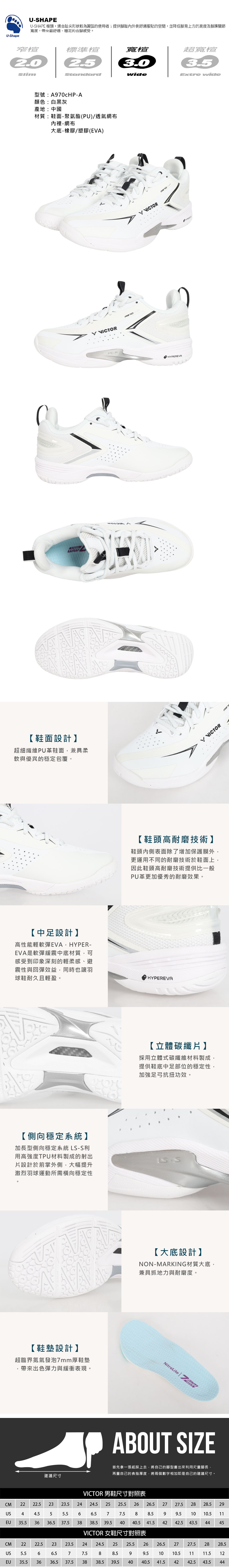 VICTOR 男女款專業羽球鞋-4E  A970cHP-A - 白黑灰