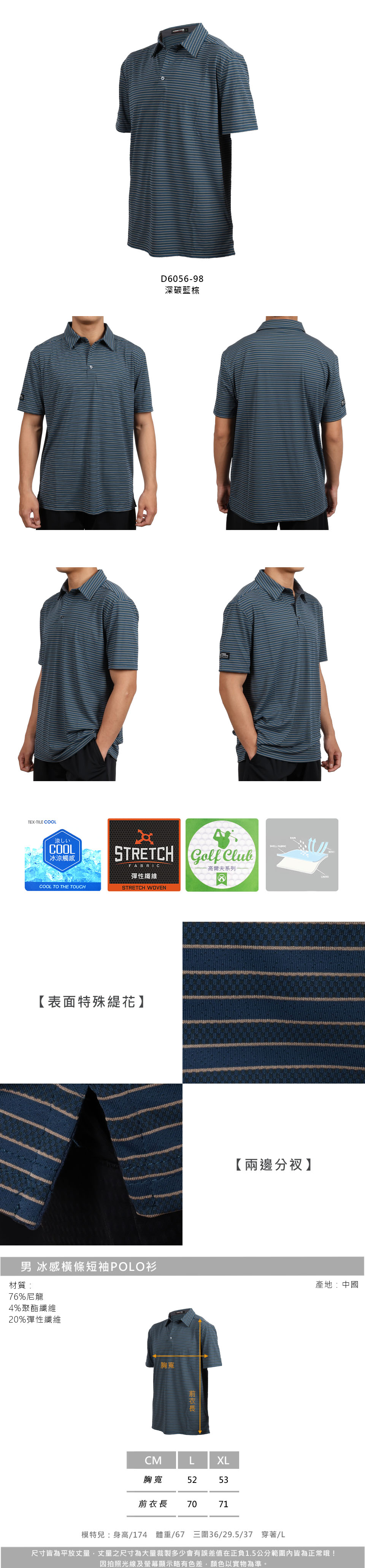 FIRESTAR 男款冰感橫條短袖POLO衫 D6056-98
