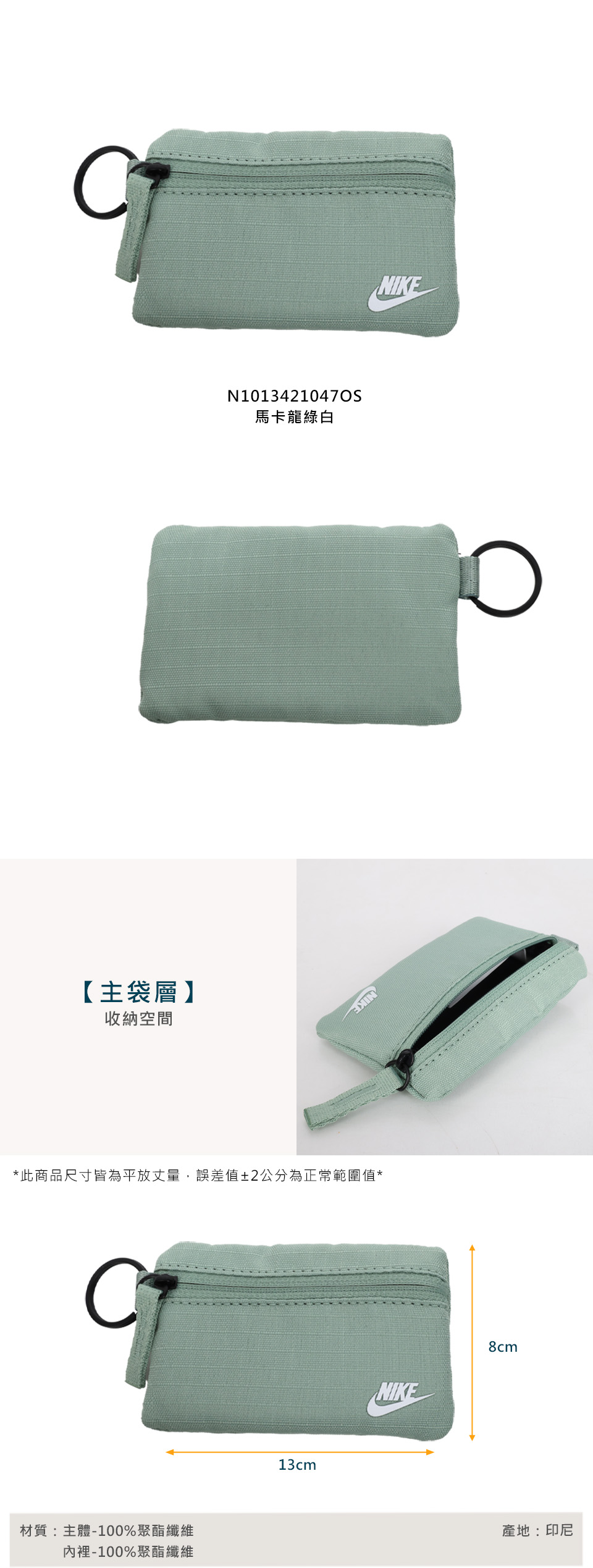 NIKE CLUB 零錢收納包  N1013421047OS - 馬卡龍綠白