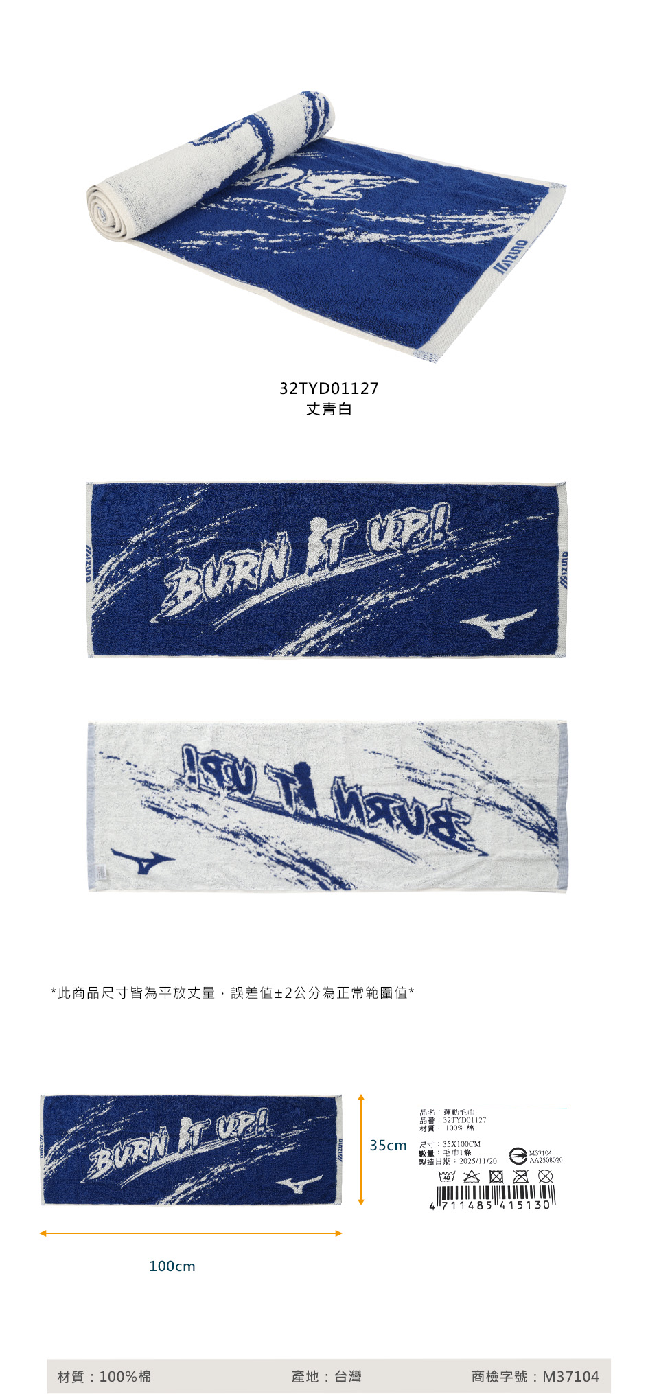 MIZUNO 提花運動毛巾  32TYD01127 - 丈青白