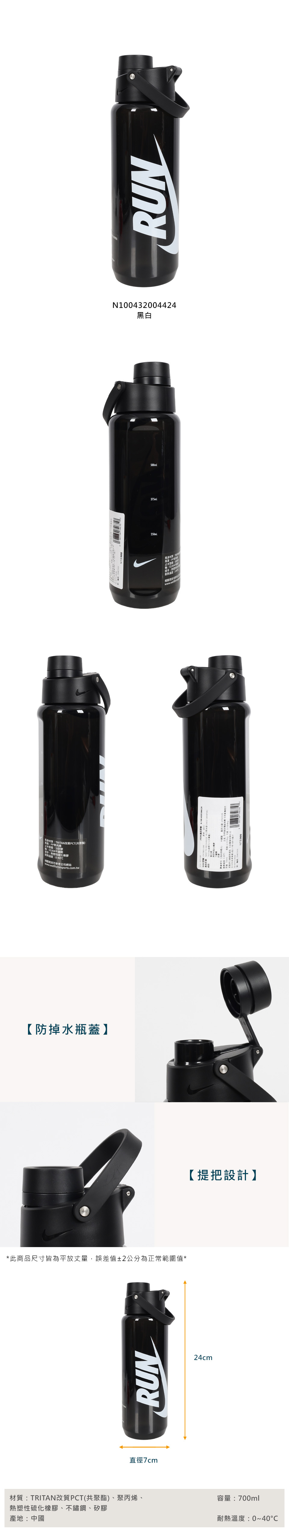 NIKE TR RECHARGE 大口徑水壺 24OZ  N100432004424 - 黑白