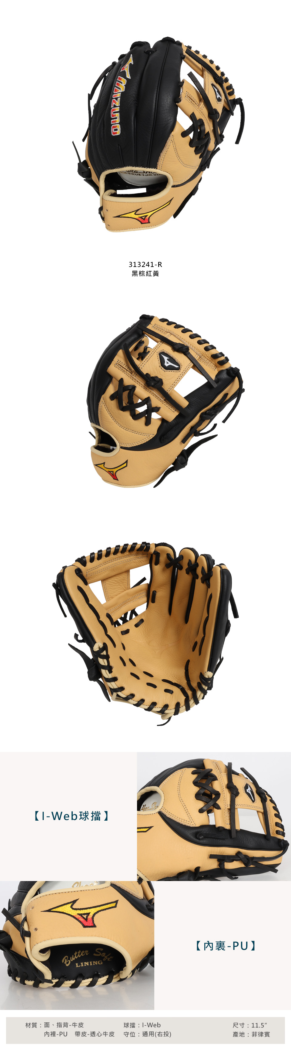 MIZUNO 棒球手套(右投)  313241-R - 黑棕紅黃